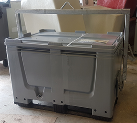 En PEHD, dim. : 3300 x 2300 x 1150 avec 2 poignées latérales et anneau de levage pour déplacement GRAND MODELE