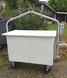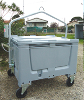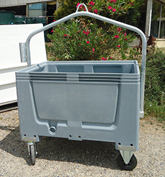 En PEHD, dim. : 2400 x 1300 x H 600 mm avec 2 poignées latérales pour déplacement PETIT MODELE