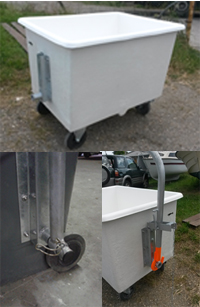 Bacs en matériau composite avec ou sans tourillon en acier zingué,